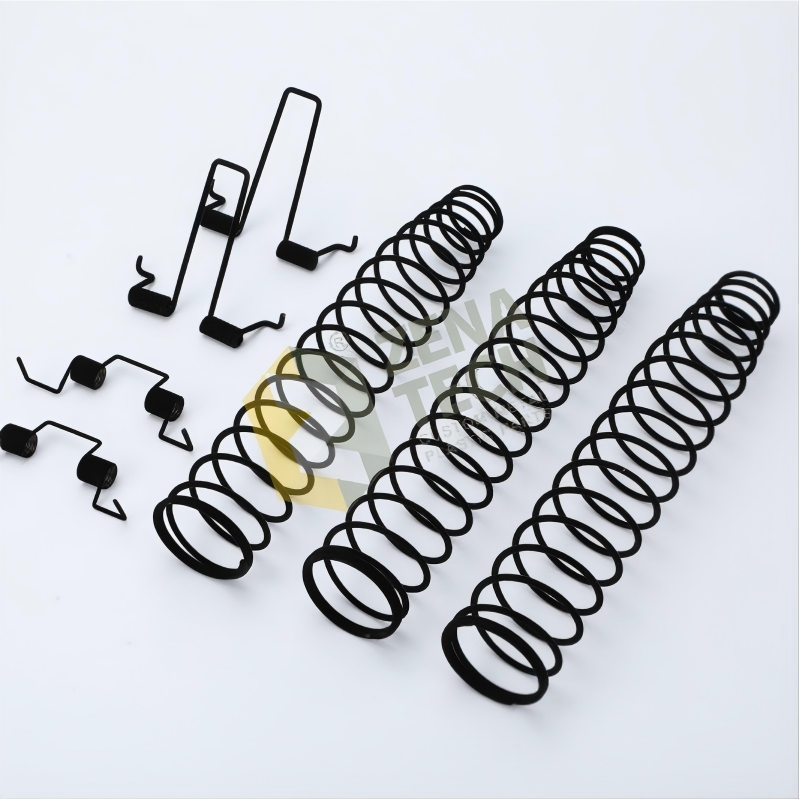 Korkean hiilipitoisuuden teräksestä tai ruostumattomasta teräksestä valmistetut puristus- tai kiertojousit. Langan halkaisija, kierrosten määrä ja vapaan pituuden voi määrittää erikseen. |